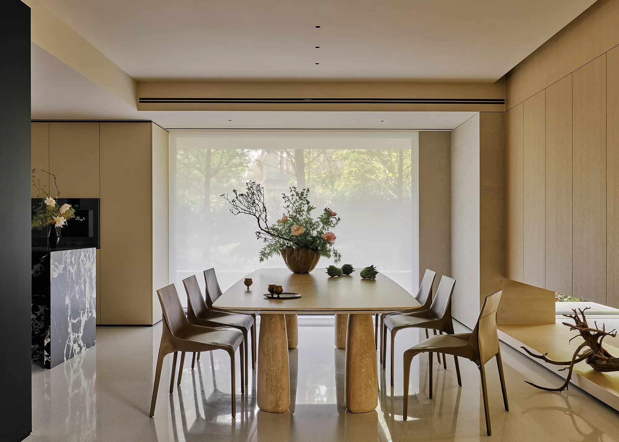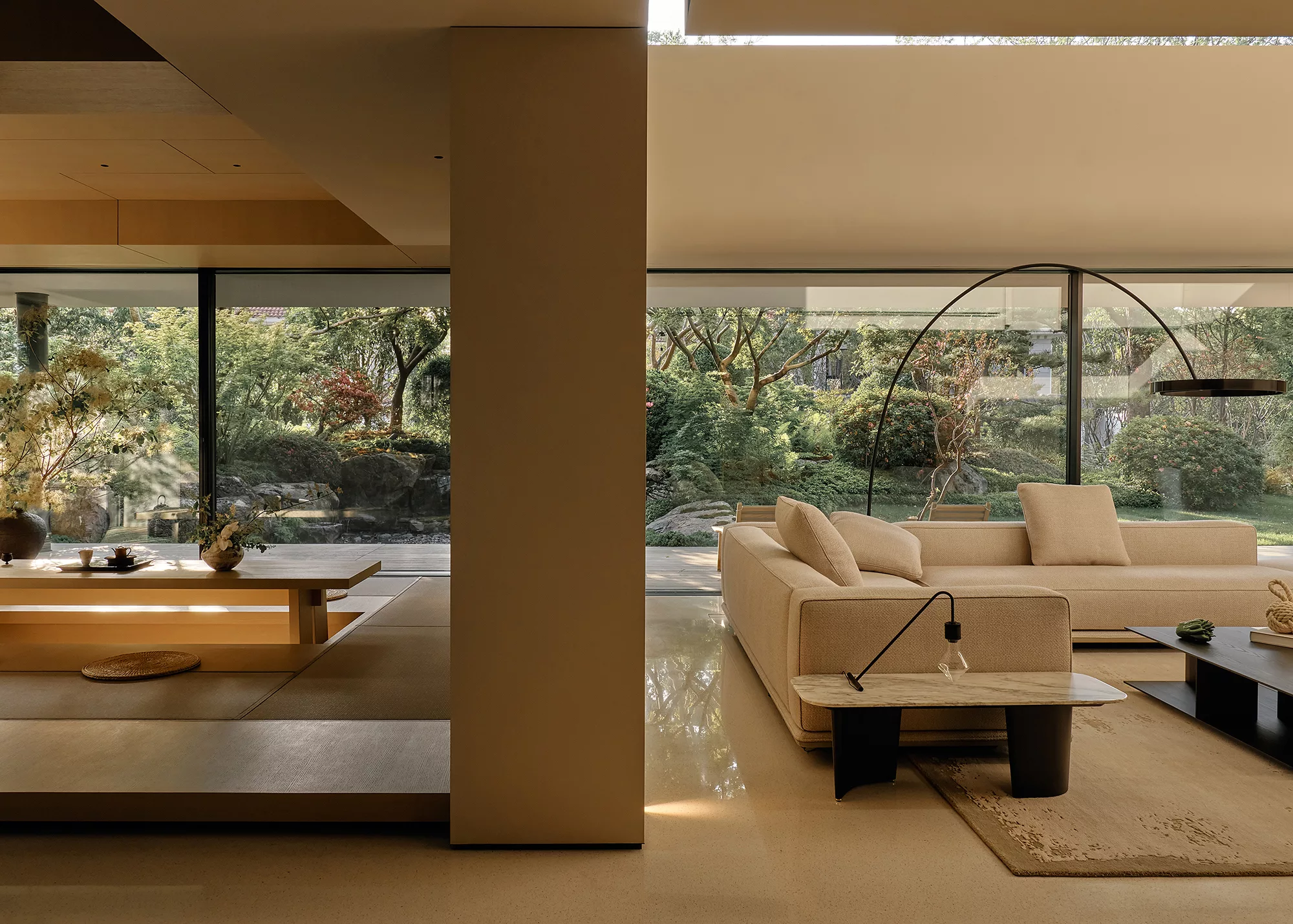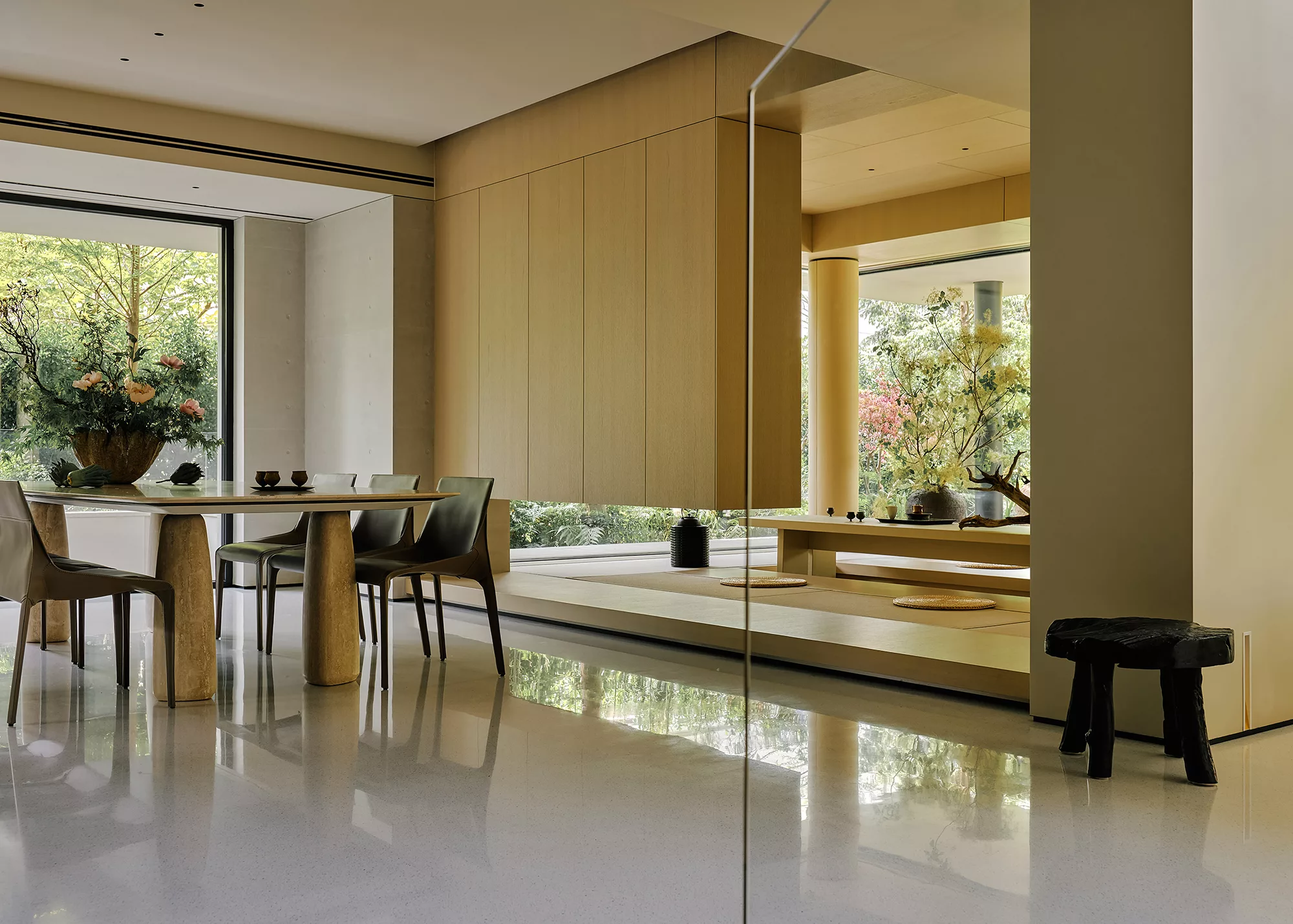 所有设计手法都力求简洁干净,以烘托窗外的院子。坐在沙发上看见什么?从二楼俯瞰到什么?客厅、餐厅、茶室的不同感受如何?让人很放松、很安静地坐上一整天——这是设计最大的意图。