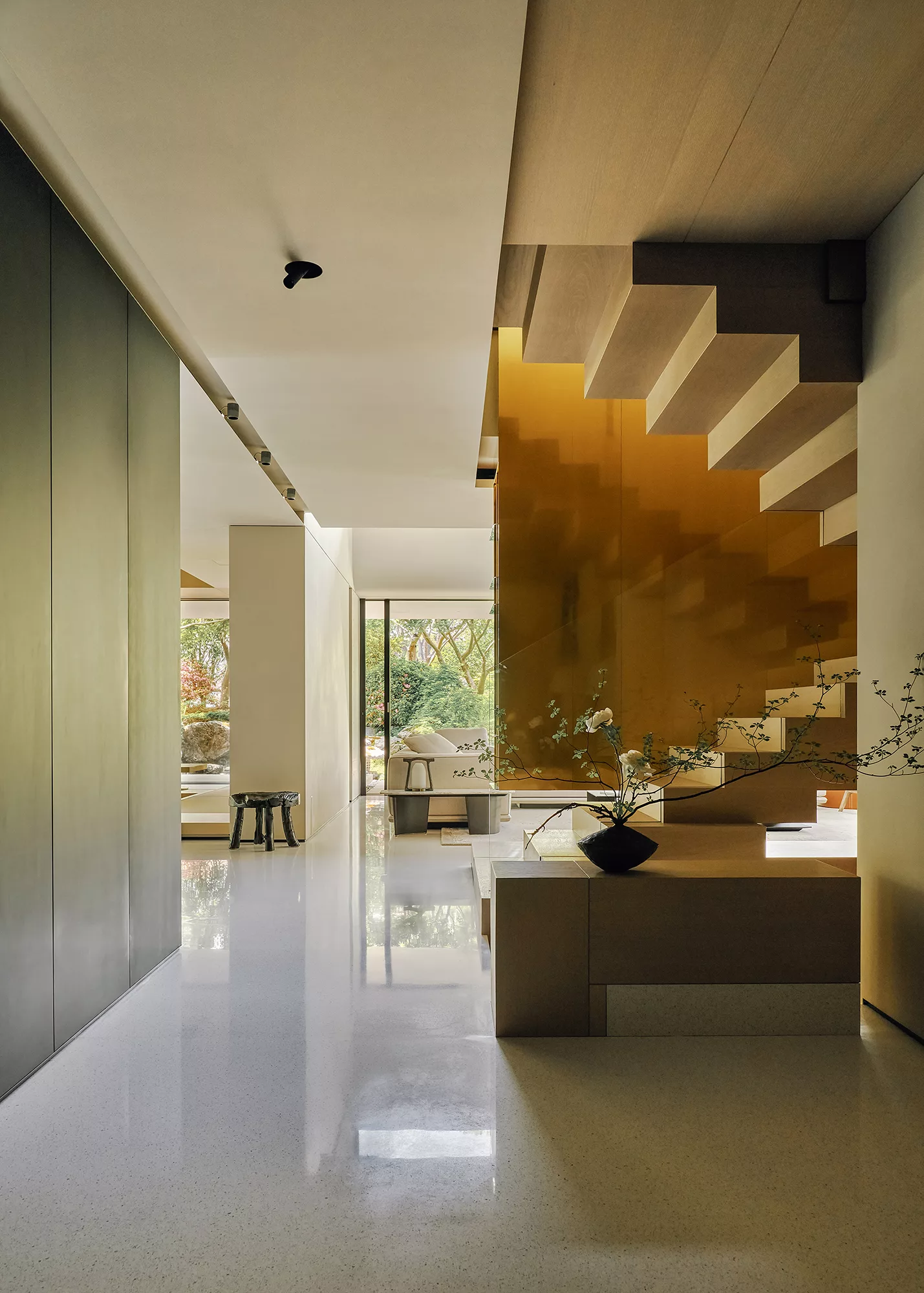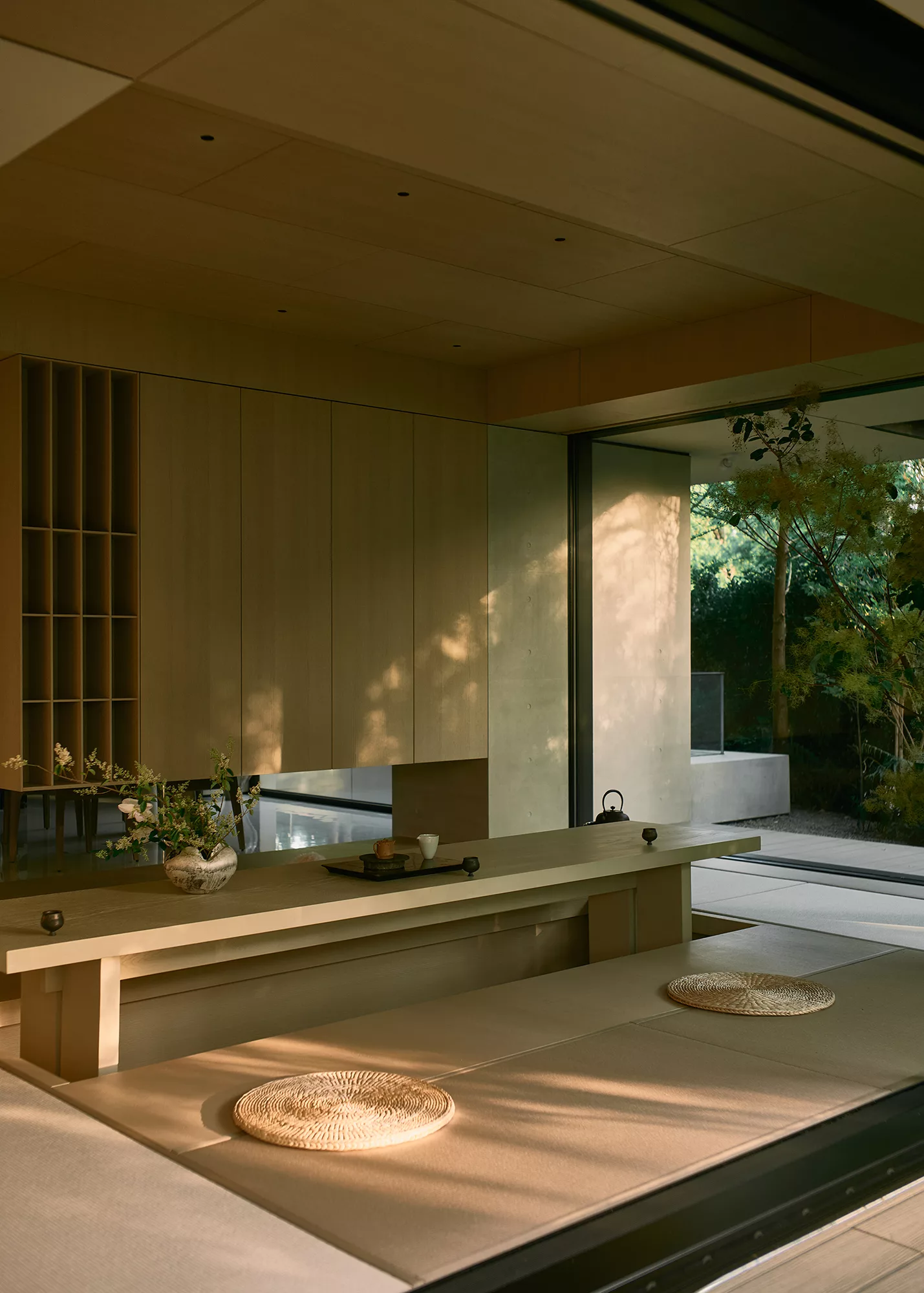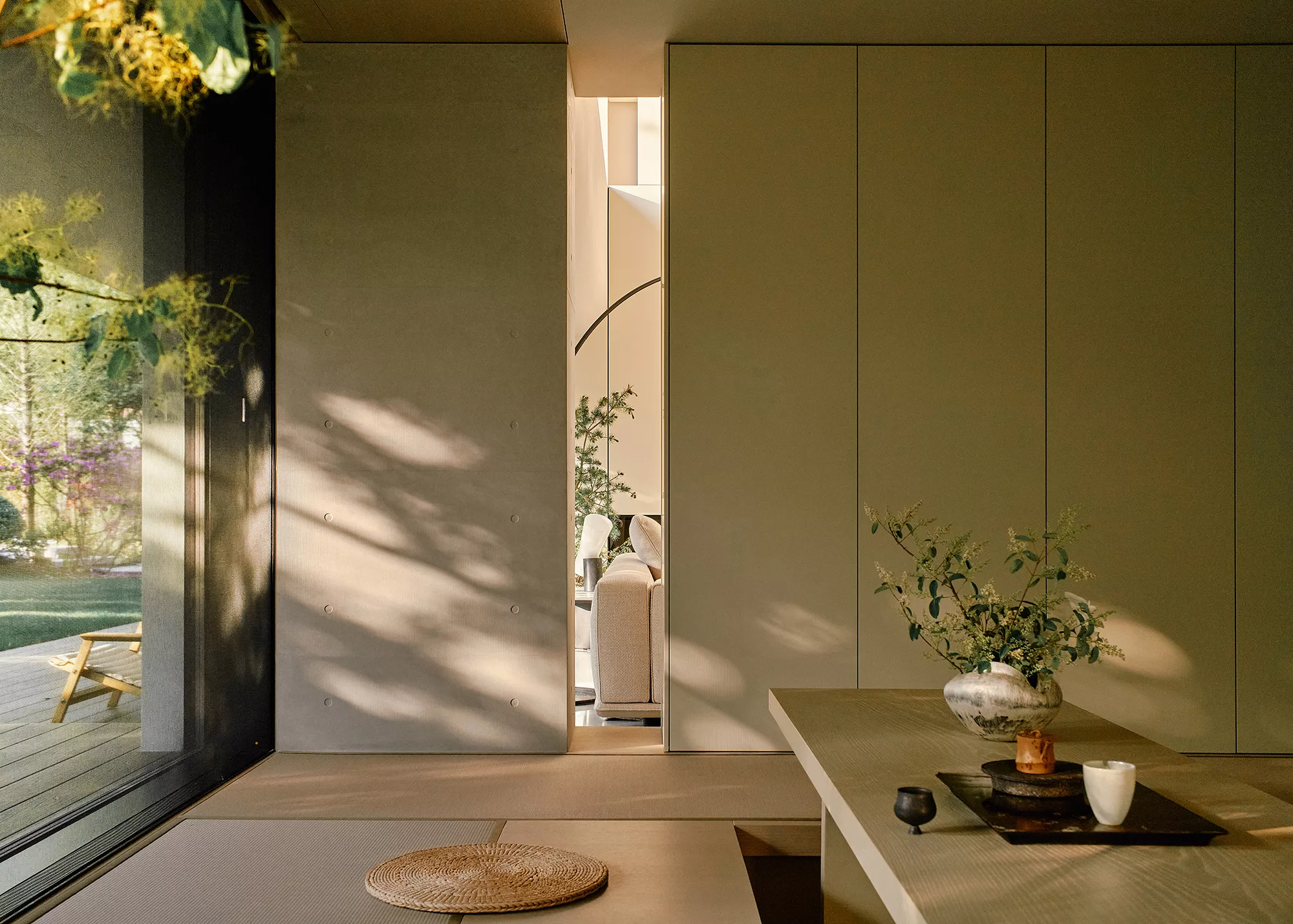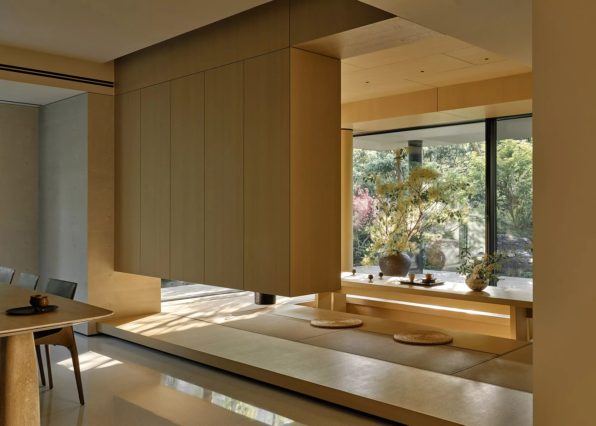 所有设计手法都力求简洁干净,以烘托窗外的院子。坐在沙发上看见什么?从二楼俯瞰到什么?客厅、餐厅、茶室的不同感受如何?让人很放松、很安静地坐上一整天——这是设计最大的意图。