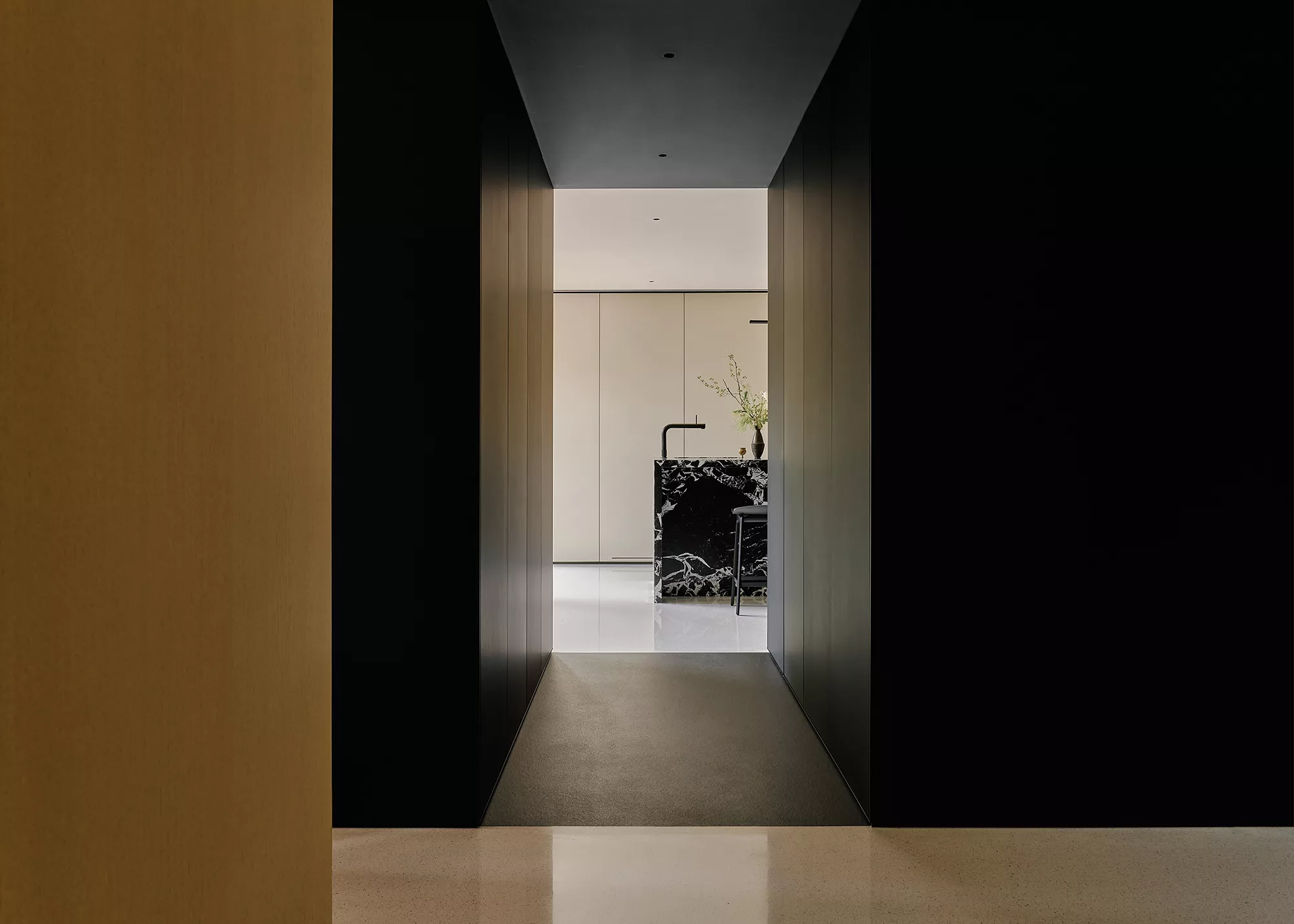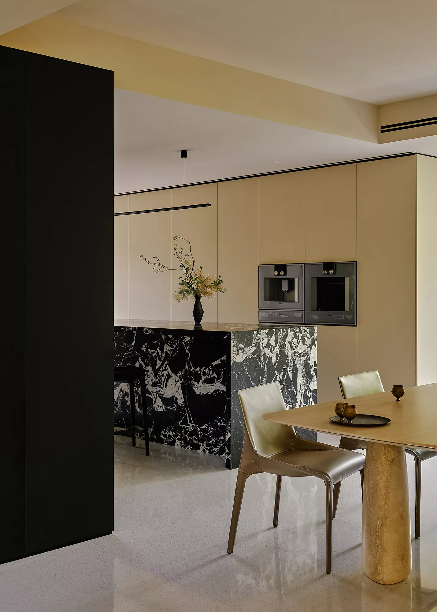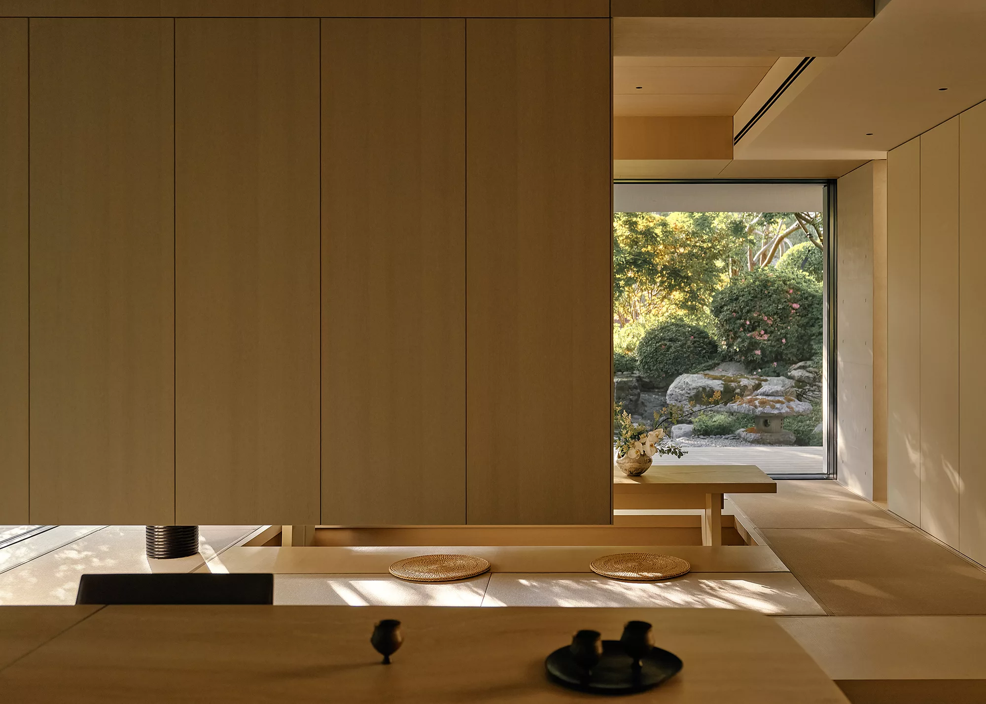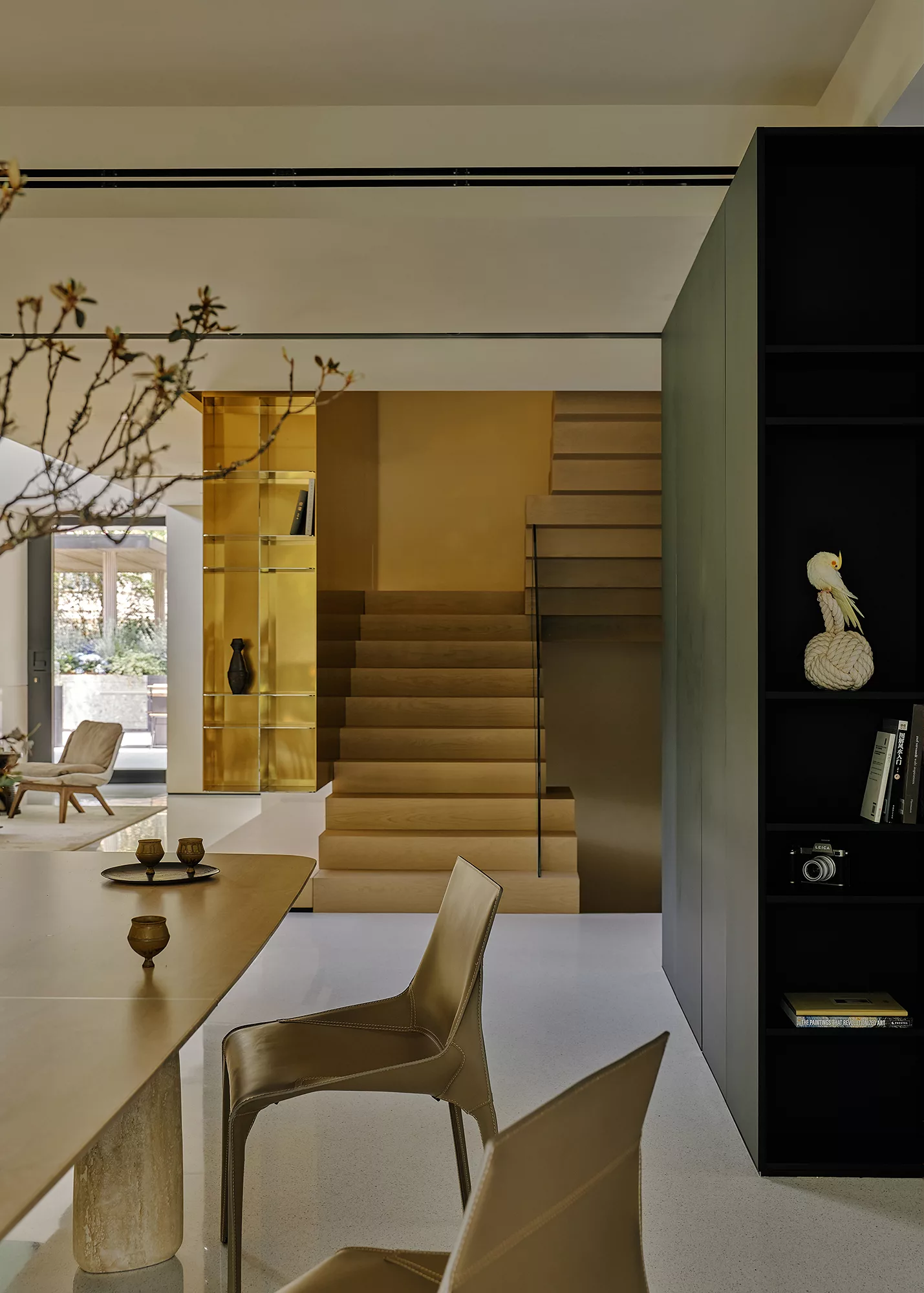 “谧庭”与“光叙”,看似是设计的两面,其实是一件事情。有树才有影,而影与光的此消彼长,才造就了空间里“光”的叙事。光,不仅指第一次照进来的光,还有反射、漫射、这些弥漫的光,与不同材料发生共振,哑光之域,有镜生辉。